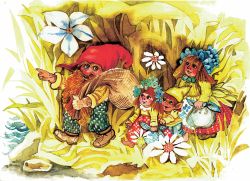 Za novým skřítkemBabí stála ve dveřích chaloupky a dívala se na malé stádečko svých přátel, kteří se otáčeli a mávali jí, než zmizeli ve vysoké trávě. Nesli si uzlíky s šatstvem a kouskem bábovky, kterou jim upekla na cestu.