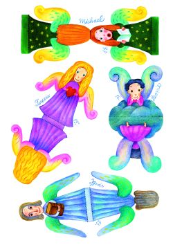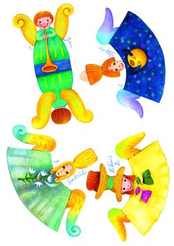 Ke každému příběhu patří vždy jeden anděl z přiložených vystřihovánek. Když je hotový zavěsí se na adventní girlandu.