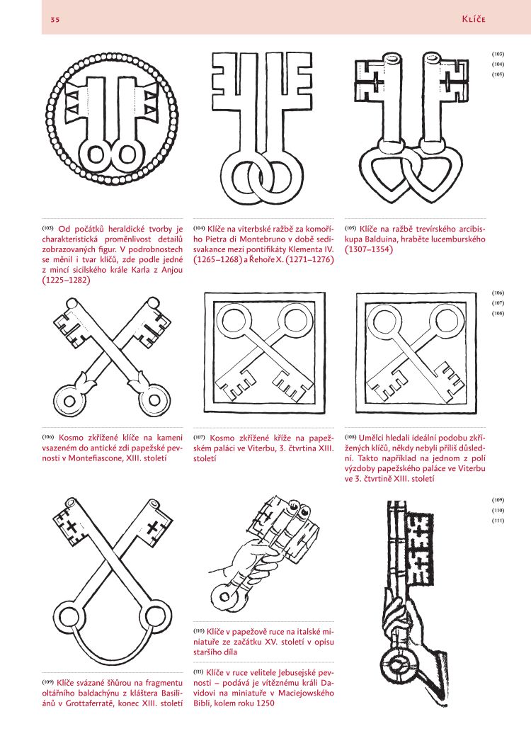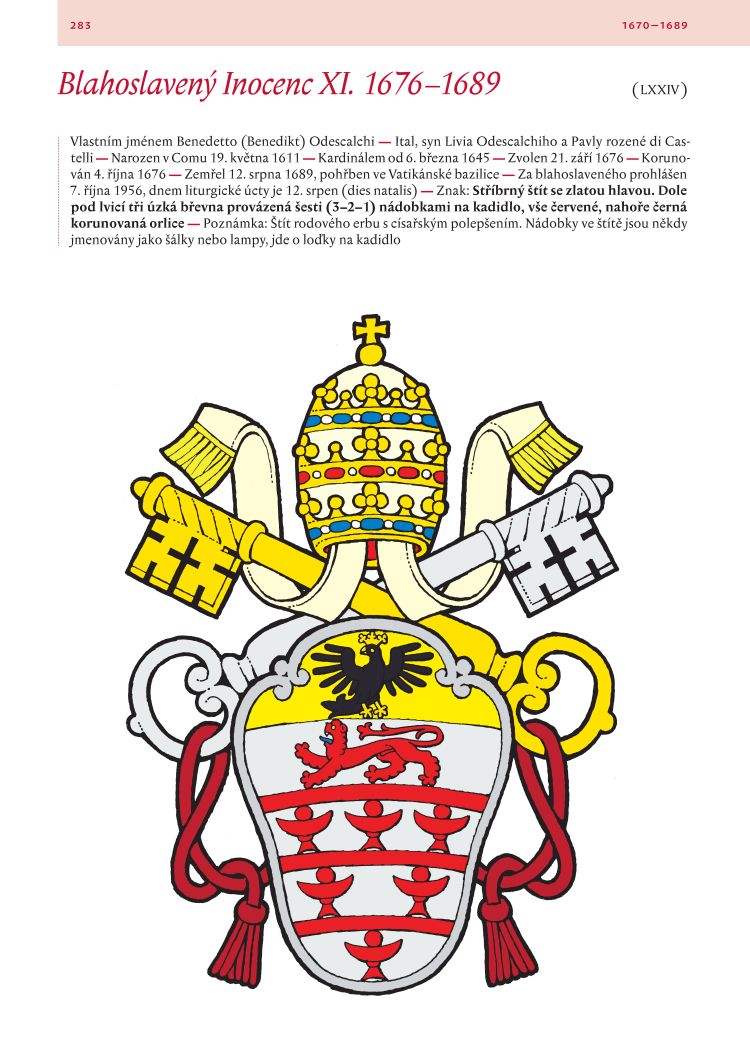 - 100 plnobarevných kreseb papežských znaků od Inocence III.(heslo z iEncyklopedie.cz) po současného papeže Benedikta XVI. (heslo z iEncyklopedie.cz) (včetně variant, pokud papežové užívali dvě podoby znaku)