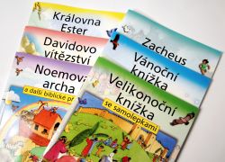 Soubor knížek se samolepkami obsahuje známé a oblíbené biblické příběhy. Děti si přečtou příběh, vyberou samolepky a doplňují jimi příslušný obrázek.