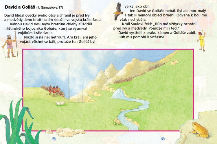 Děti si mohou přečíst příběhy o tom, co Bůh slíbil Abrahámovi, o Josefovi a jeho bratrech, o Davidovi a Goliášovi, o zázračném uzdravení Námana, o mudrcích, kteří šli za hvězdou, o tom, jak Ježíš vrátil život dívce, a o snídani u jezera. Hledejte k příběhům samolepky a nalepujte si je do obrázků. Každá dvoustrana obsahuje jeden příběh a obrázek k tomuto příběhu. Na obrázku chybí důležité prvky, které jsou jako samolepky na prostřední dvoustraně. Děti si vybírají samolepky a doplňují jimi obrázek. Tak se děti zábavným způsobem seznámí se sedmi biblickými příběhy.